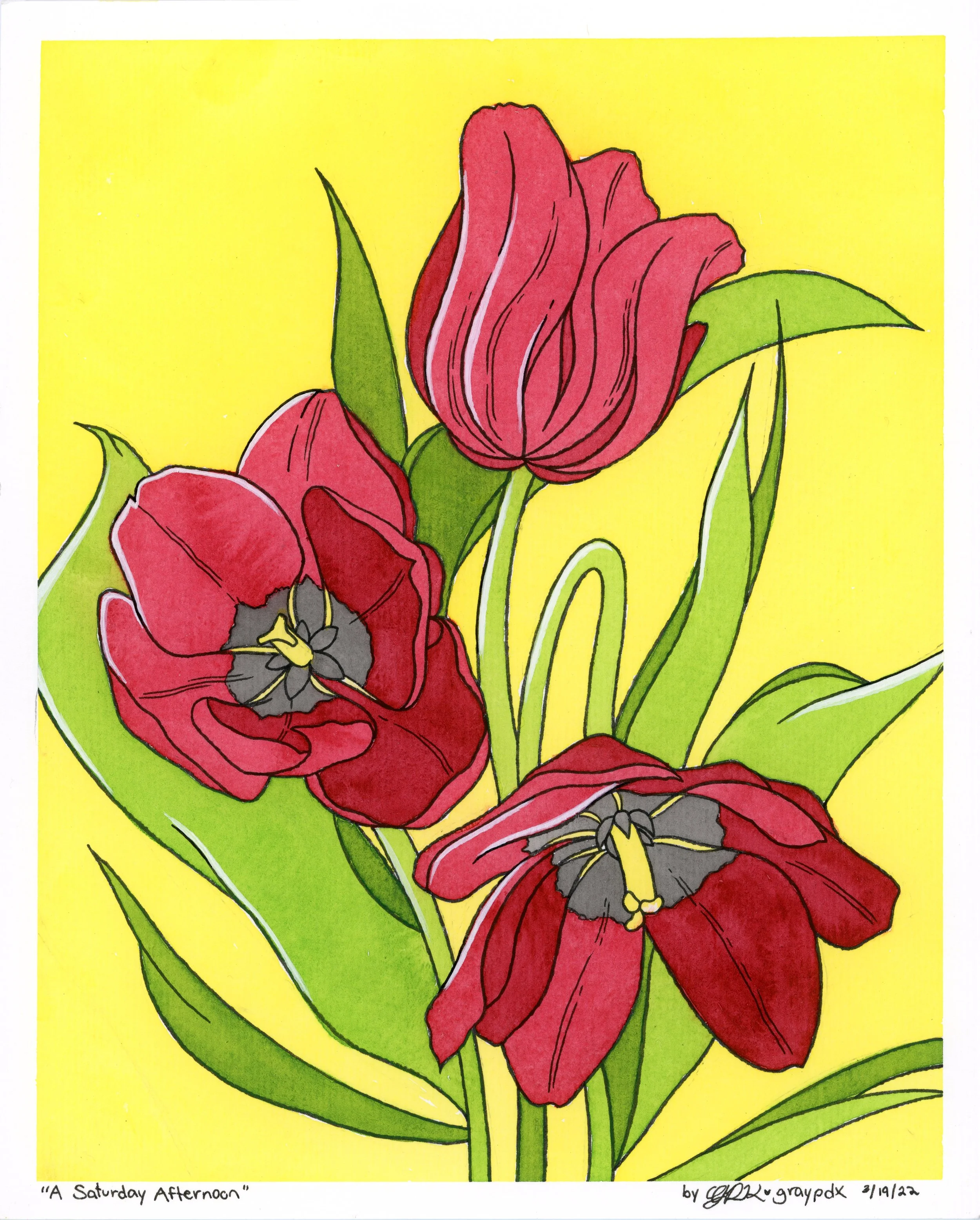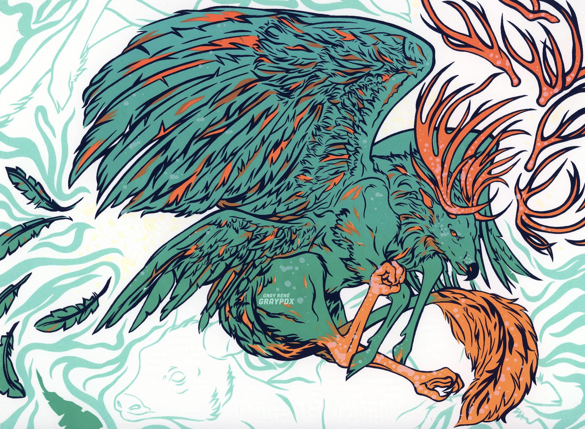 My name is Gray, and I am an illustrator, painter and printmaker who works primarily with ink, watercolor and various printmaking methods. My work most often features vibrant stylized animals, mythical creatures, and portraits with themes of queer identity, empowerment, mysticality, tenderness, healing and grief. I hope to use art as a means of inspiring collective liberation, social justice and hope amidst ongoing struggles perpetuated by the oppressive and colonial systems that harm our communities. To me, my art serves as a symbol of change, understanding and gratitude towards the life I have both been given, and have led.